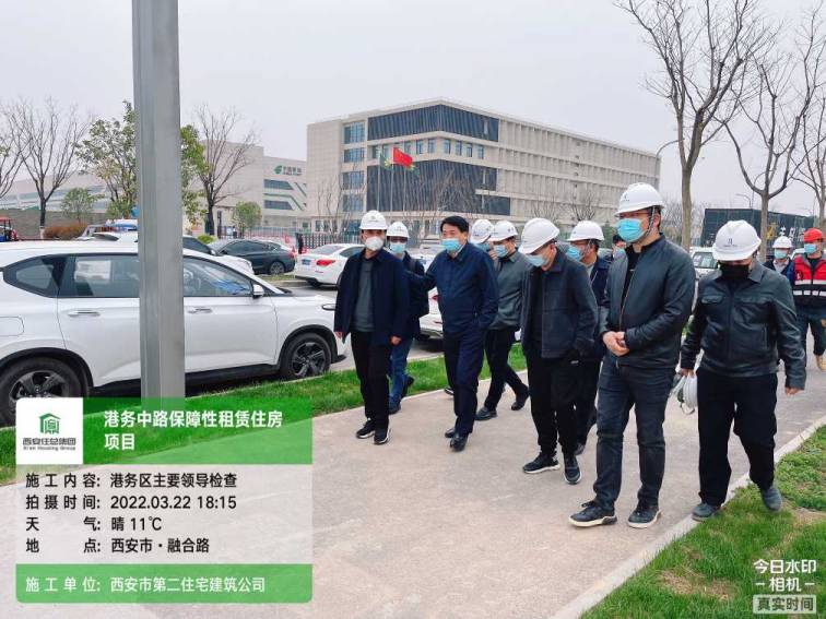 3月22日下午西安國際港務區管委會主任孫藝民主任等一行人蒞臨西安市住總建設集團承建的港務中路“平疫結合”保障房項目檢查指導工作,對現場質量進度安全全方位的進行指導,安居集團副總經理王煒鵬同志、建管部及住總建設集團總經理等同志陪同檢查。