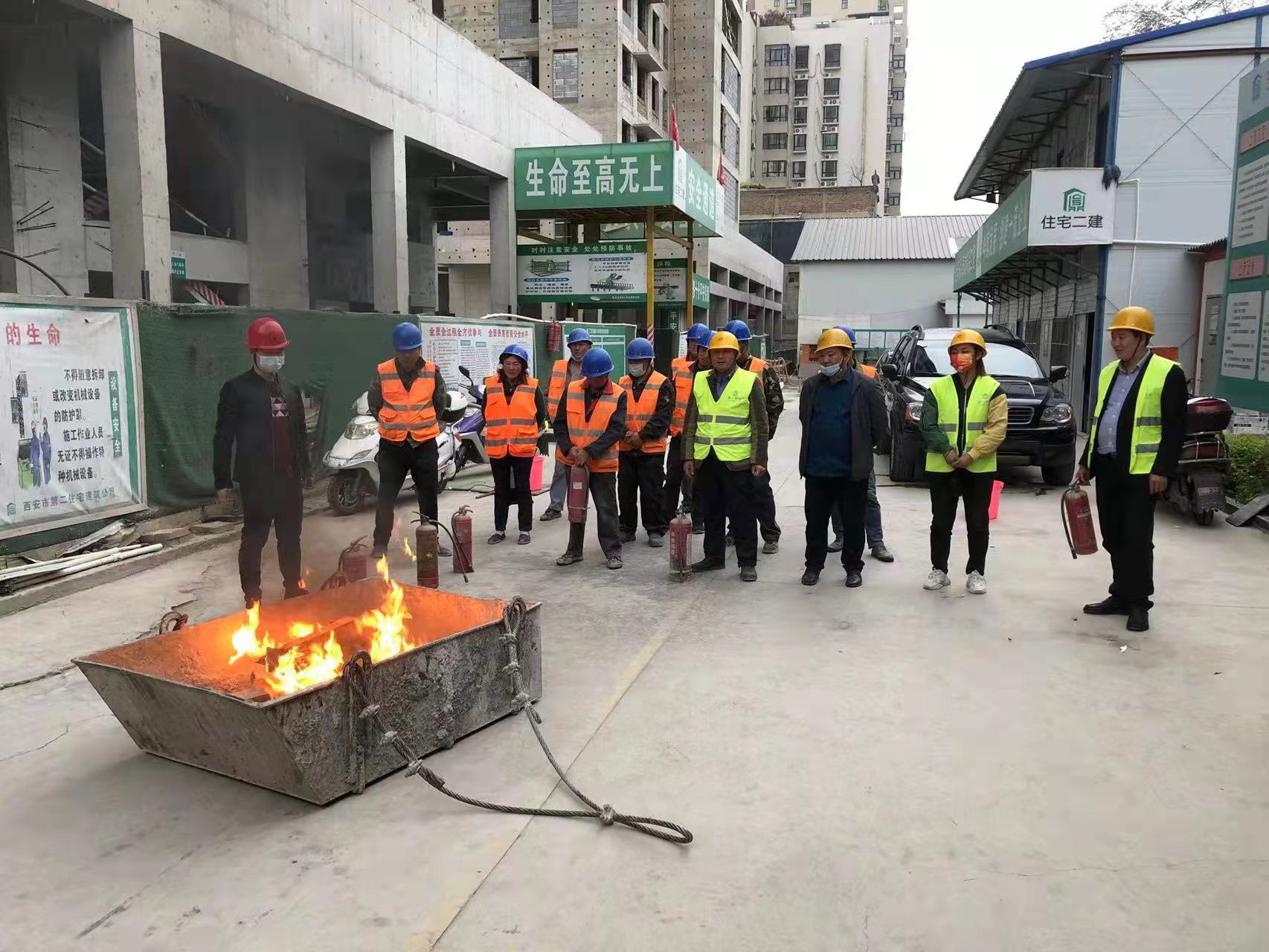 為做好春季建筑施工現場防火工作,堅決預防和遏制火災事故發生,提升項目施工人員安全意識,推進安全生產各項措施的落實,按照住總集團2022年度安全生產管理工作安排,公司于4月1日在黃金嘉境項目開展消防應急演練。