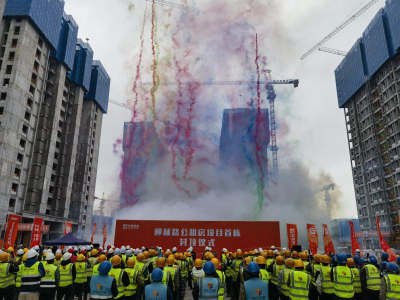 柳林路公租房項(xiàng)目EPC總承包一標(biāo)段首棟封頂